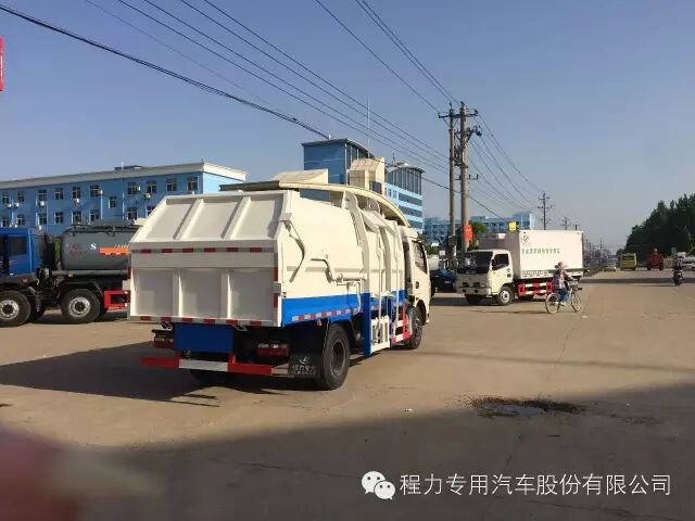 为适应市场需要,公司技术部特配合压缩垃圾车厂生产研发出3800轴距侧装式压缩,此车型外型美观,装载量大,实载垃圾8方,圆弧形骨架式推头,配合后门双液压锁紧,使车辆的压缩效果大大增加。